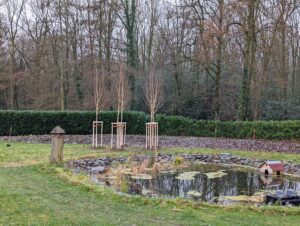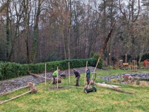 Im Dezember 2021 werden 5 große Birken geliefert und im Kreis eingesetzt. Es folgen noch einige einheimische Moorbirken und zwei oder drei Kiefern. Im Frühjahr setze ich 200 Weidenröschen, Mädesüß und Baldrian. Dazu wird ein Weg aus Kies durch den Nordischen Garten führen, der an einem roten Holzhaus – eben typisch Schwedenhaus – m