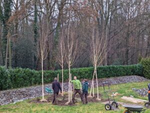 Im Dezember 2021 habe ich fünf wunderschöne Himalaya-Birken (Betula utilis jacquemontii) setzen lassen. Die Birken stehen im Kreis in meinem neuen Nordischen Garten und sind schon jetzt im Winter mit ihrer hellweißen Rinde ein Blickfang. Birken sind wichtige Bäume für eine Vielzahl von Schmetterlingen, die im Baum ihre Eier legen. Auch die Raupen fressen sich gerne an den Birkenblättern satt. Zusätzlich habe ich fünf Moorbirken (Betula pubescens) in loser Pflanzung auf der Wiese gesetzt. Die Birke ist nicht frostempfindlich und ihr machen Fröste bis -30 Grad nichts aus. Das ist gut, da ich gerade gelesen habe, dass es im Januar 2022 bis zu -20 Grad kalt werden soll.
