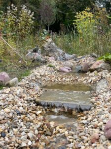 Mein Traum war es schon immer, einen Bachlauf im Garten zu haben. Das Plätschern, die Vielfalt für die Natur an Pflanzen und als Nahrungs- und Trinkquelle für Tiere, haben mich fasziniert. Im Frühjahr 2023 begannen die Arbeiten.