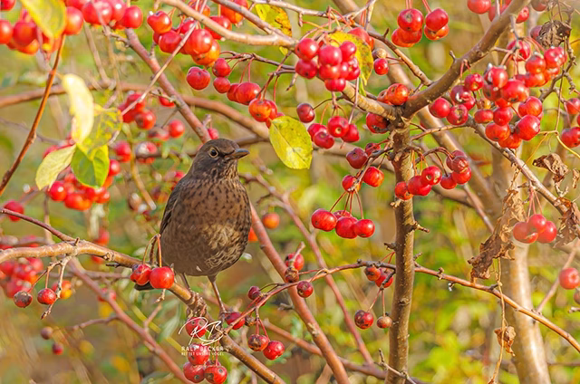 Amselweibchen im Apfelbaum